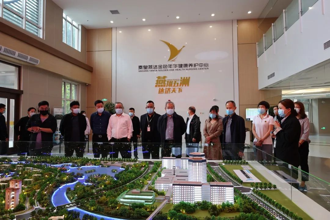 領(lǐng)導一行首先來到秦皇燕達國際健康城實景沙盤,了解整體發(fā)展規(guī)劃。秦皇燕達國際健康城包含秦皇燕達養(yǎng)護中心、秦皇燕達醫(yī)院、秦皇燕達培訓學院、秦皇燕達研究院共五大板塊,是集醫(yī)療、養(yǎng)老、康復、科研、教育等為一體的綜合性健康產(chǎn)業(yè)基地。