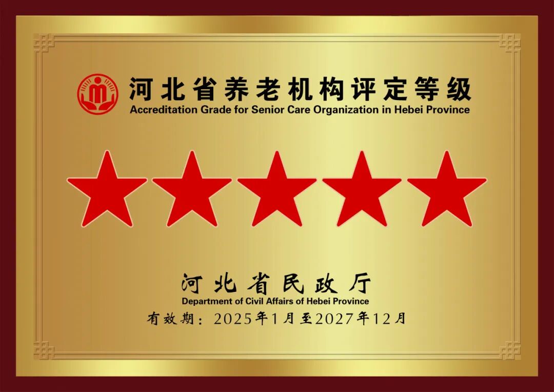 2025年1月,河北省民政廳將燕達金色年華健康養護中心復評為“五級養老機構”。